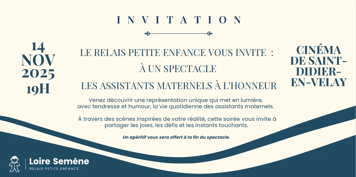 Le 14 Novembre 2025 à 19 heures : Soirée des assistants maternels au cinéma de Saint-Didier-en-Velay : Apéro-spectacle Scène de vie des assistants maternels avec la Cie Archipel.
