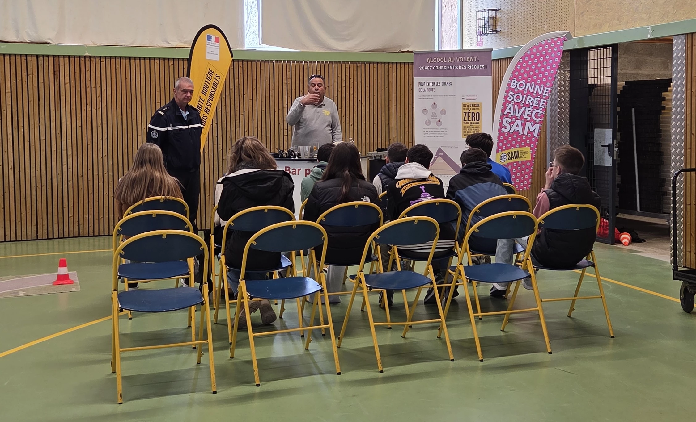 - Gendarmerie & Préfecture : expérimentation des effets de l’alcool (lunettes de simulation, parcours, éthylotest, réglementation)