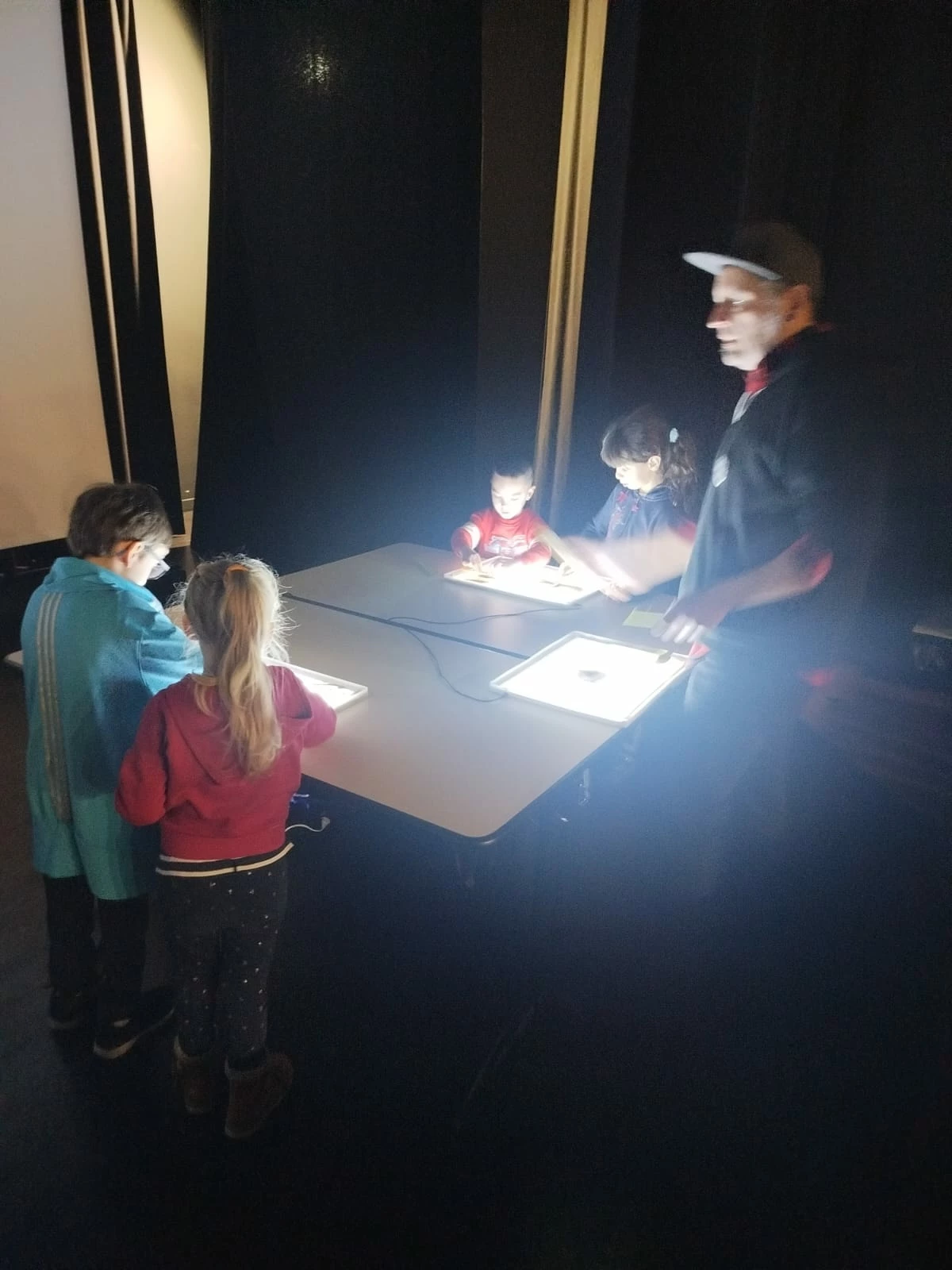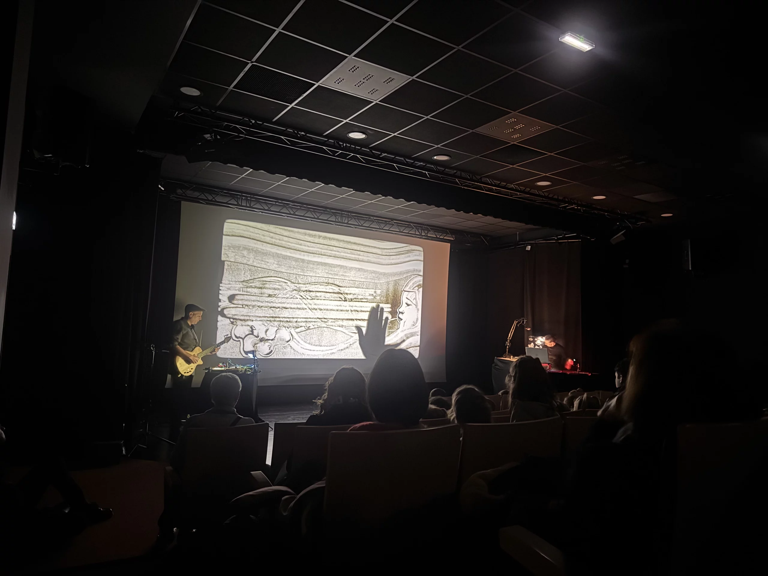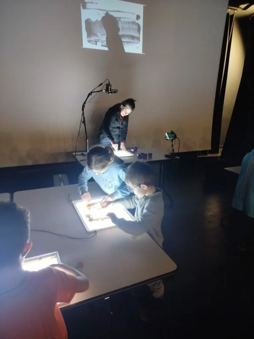 La veille de la représentation, la Compagnie Caminos animait également un atelier d’initiation au dessin de sable. Les enfants ont pu découvrir cette technique sur table lumineuse et expérimenter librement cette matière mouvante, dans un cadre ludique et stimulant.