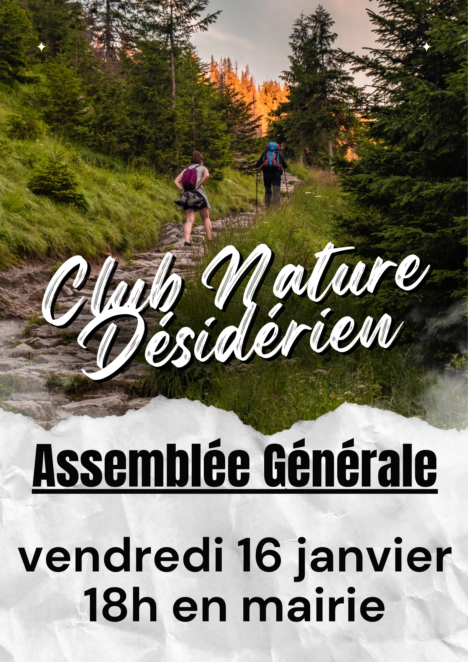 Le Club Nature Désidérien tiendra son assemblée générale le vendredi 16 janvier à 18h en mairie.