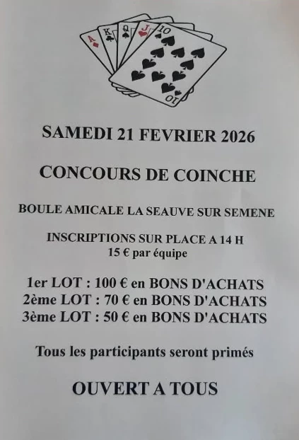 Concours de coinche organisé par La Boule Amicale ouvert à tous.