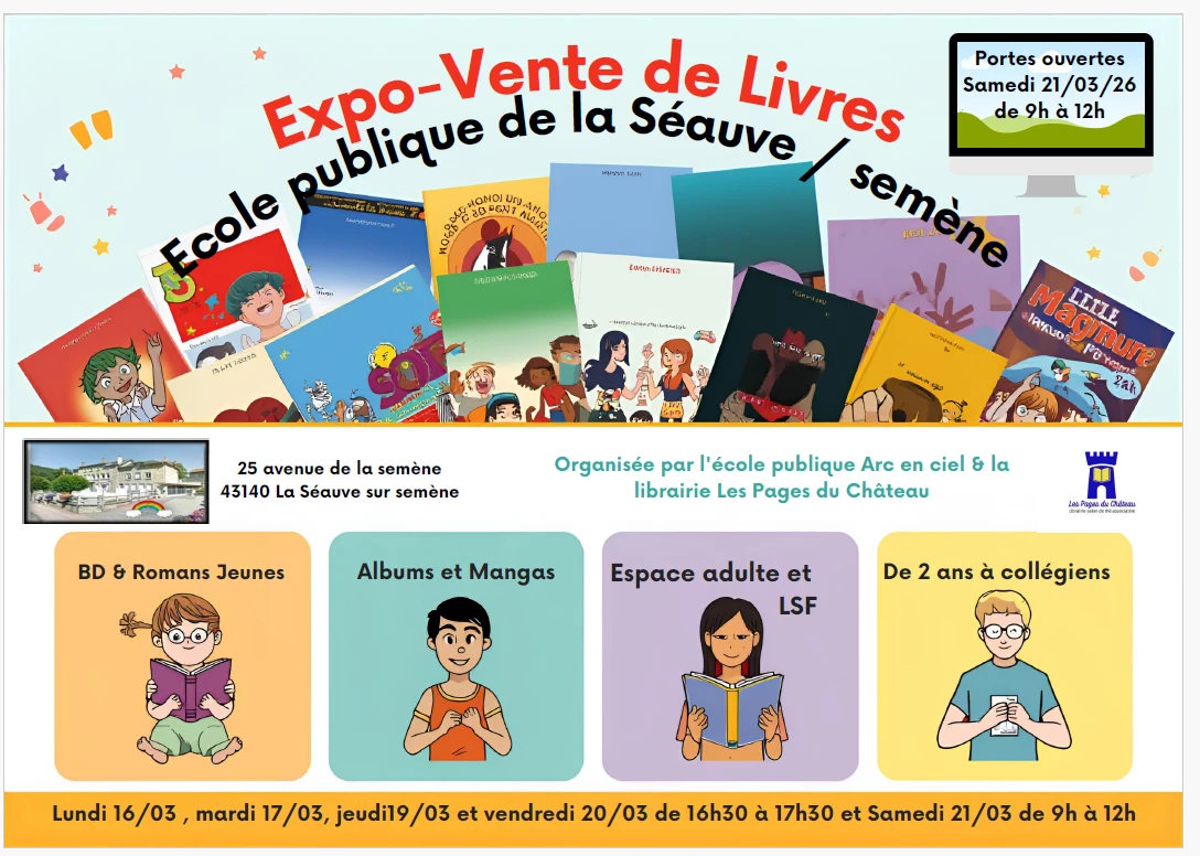 Expo-vente de livre organisée par l'école Arc-en-Ciel et la librairie Les Pages du Château d'Aurec-sur-Loire.