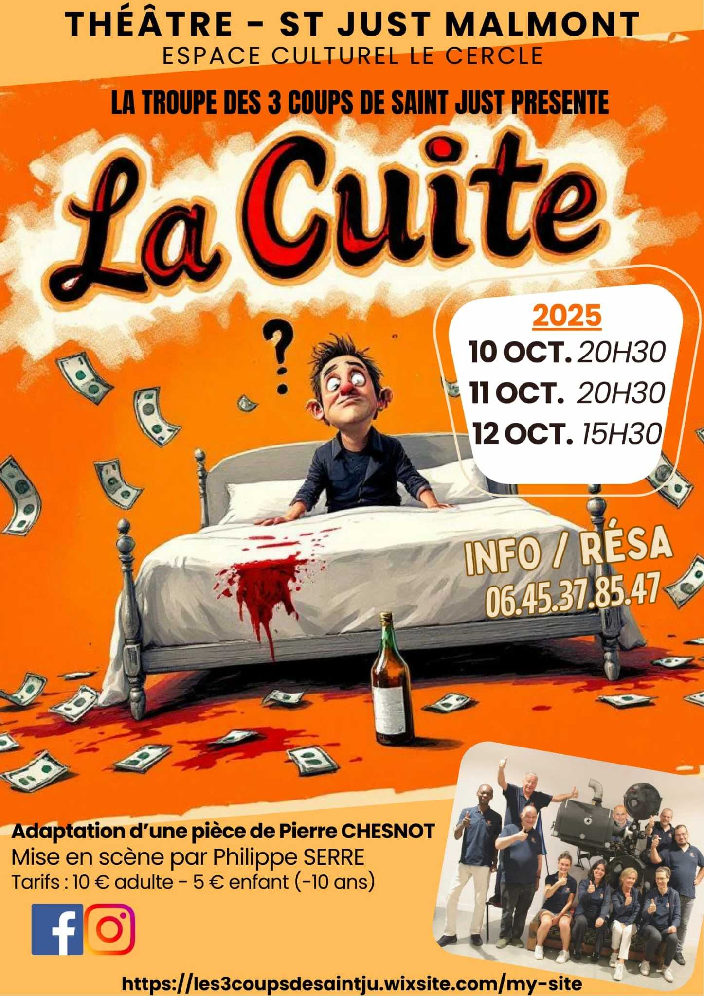 La cuite : adaptation d'une pièce de Pierre Chesnot, mise en scène par Philippe Serre.