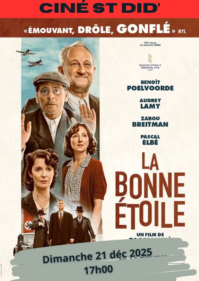 Séance de cinéma "La bonne étoile" de Pascal Elbé. Durée : 1h40. Avec Benoît Poelvoorde, Audrey Lamy, Zabou Breitman.