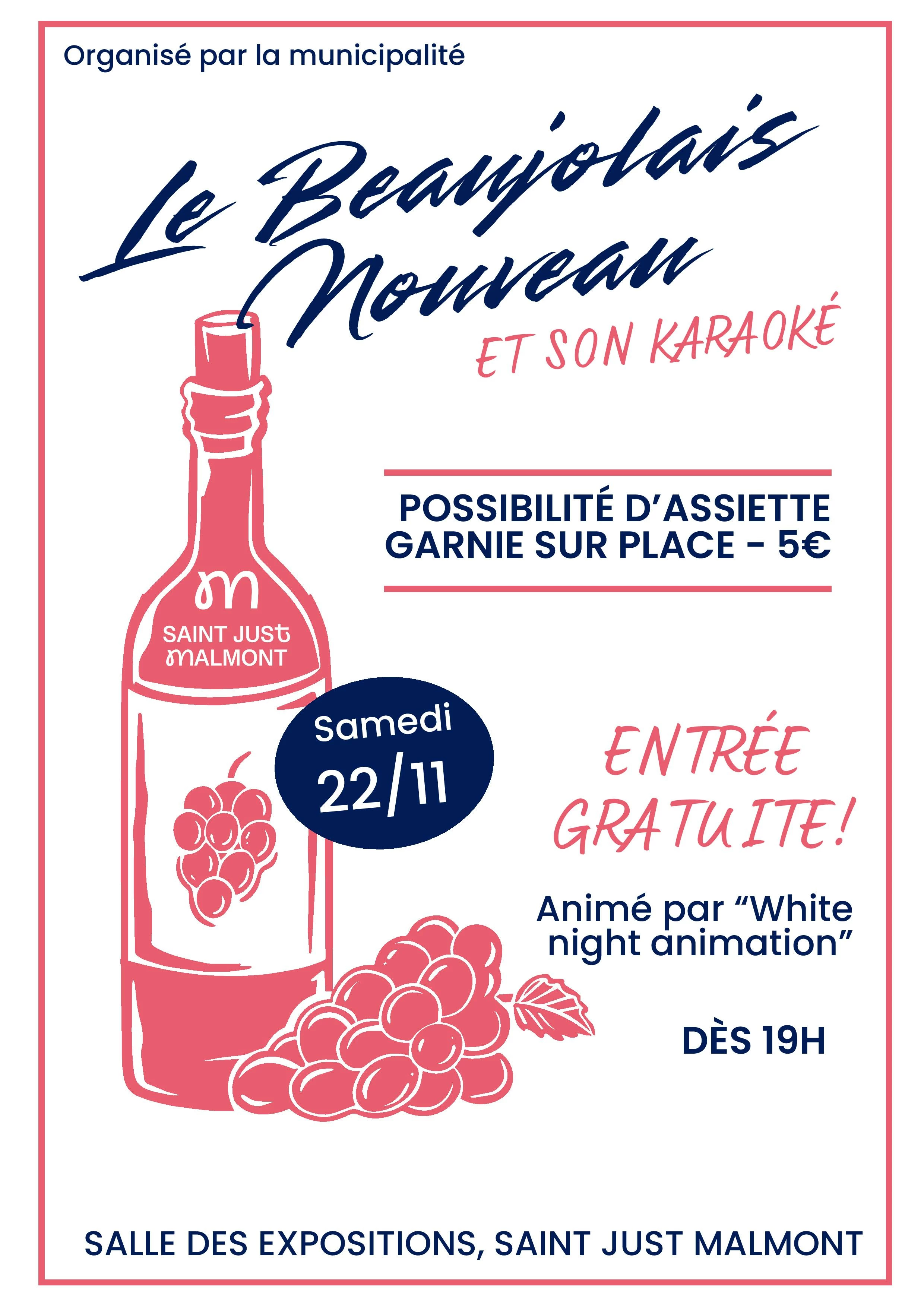 venez passer une soirée conviviale avec le beaujolais nouveau et karaoké organisé par la mairie.