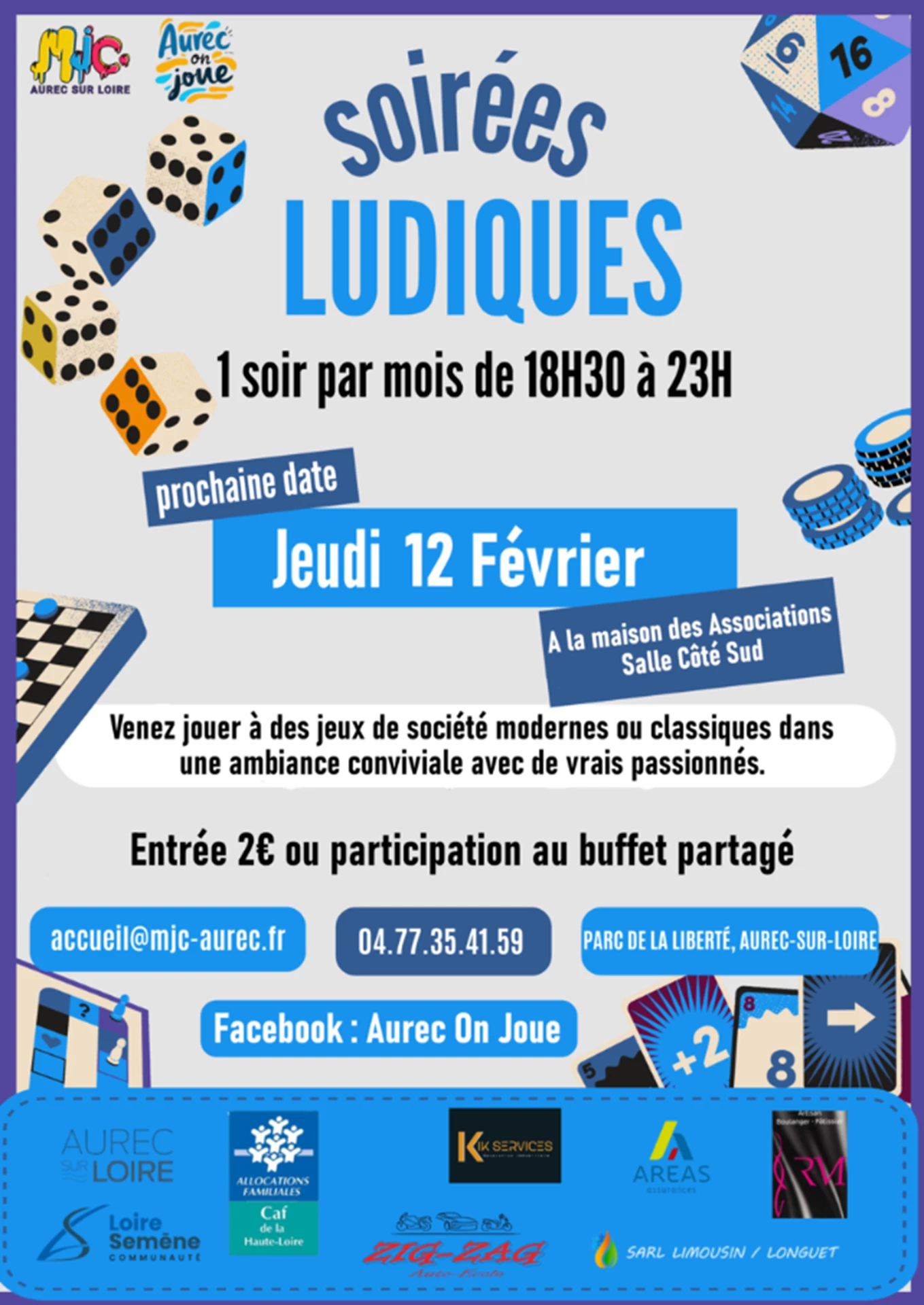 La MJC d'Aurec-sur-Loire vous propose de venir jouer à des jeux de société modernes ou classiques dans une ambiance conviviale avec de vrais passionnés !