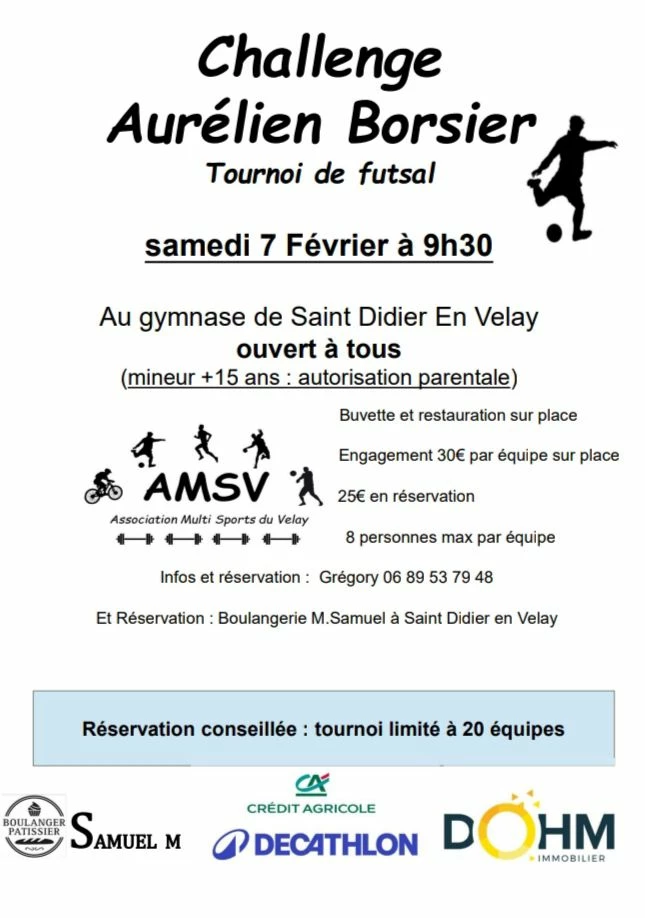 L'association Multi Sport du Velay organise un tournoi de futsal, challenge Aurélien Borsier ouvert à tous.