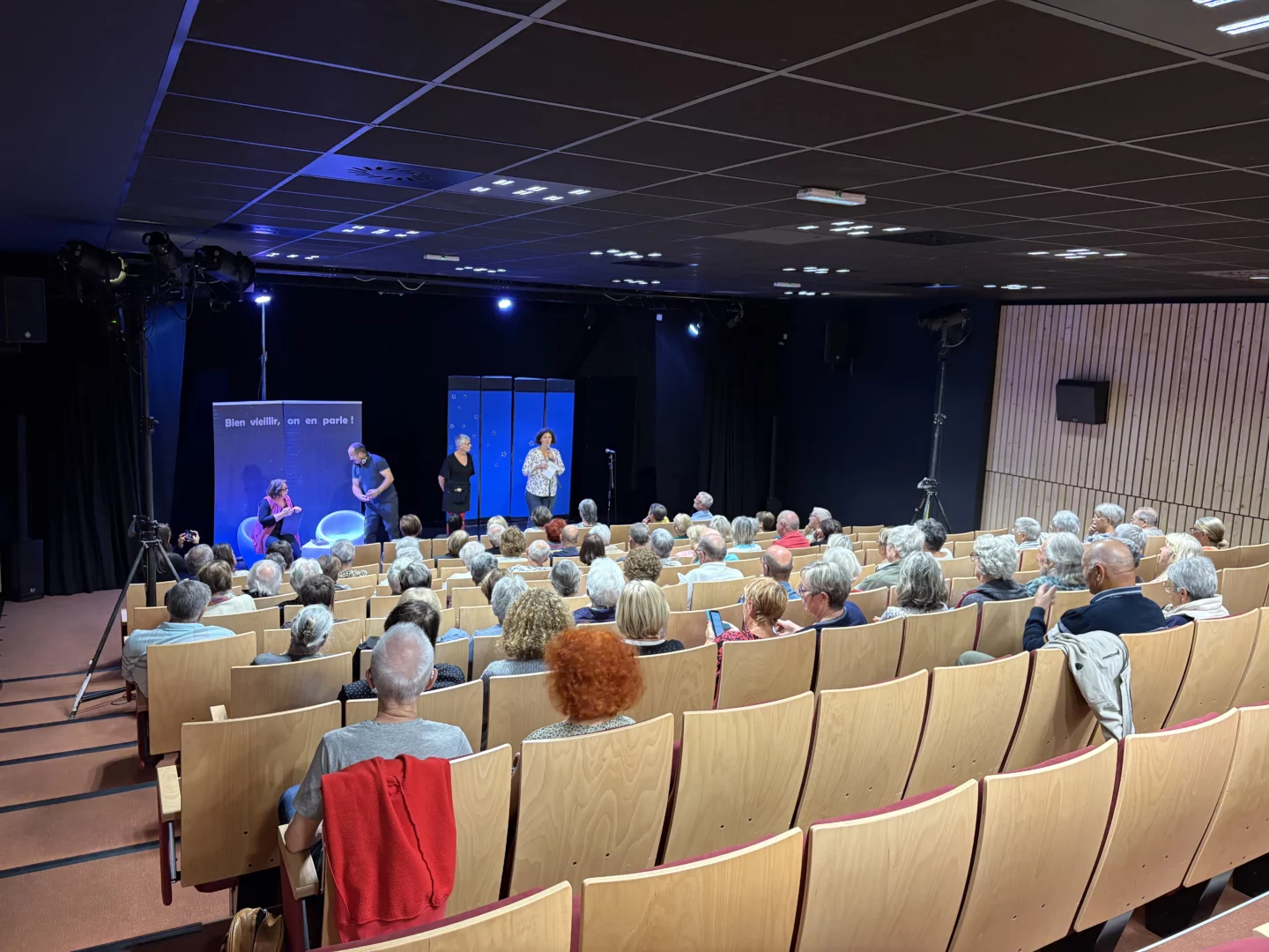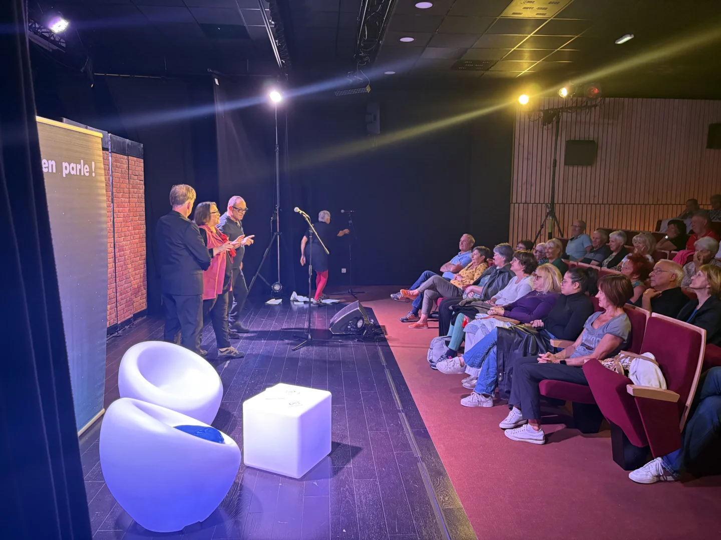 Gratuite et ouverte aux personnes dès 55 ans, la pièce a su captiver son public grâce à une mise en scène originale mêlant un show télévisé fictif et les coulisses de la scène. Cette combinaison a permis d’aborder avec légèreté et sincérité les différentes étapes de la vie, en invitant les spectateurs à rire, réfléchir et s’émouvoir.