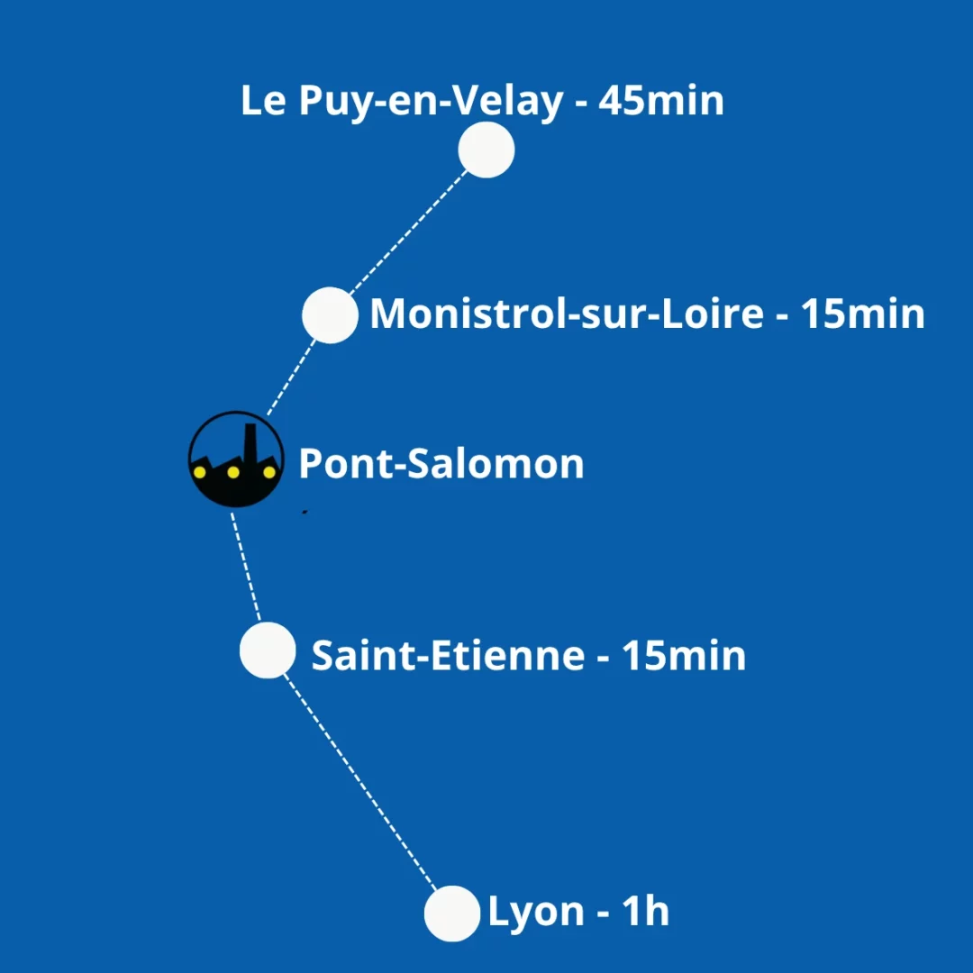 1h depuis Lyon – 15 min depuis Saint-Etienne – 45min depuis le Puy-en-Velay